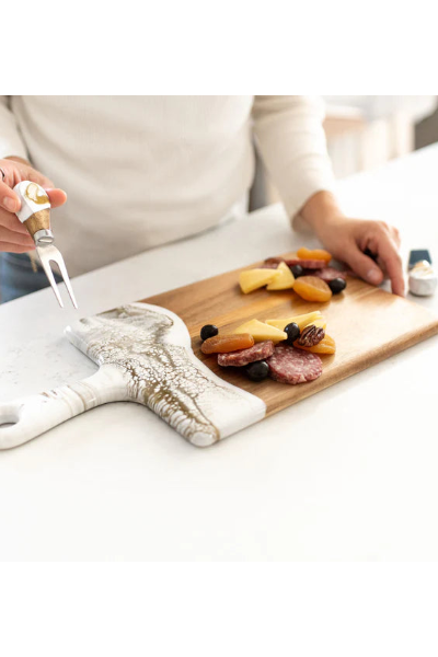These pieces blend gorgeous Acacia hardwood and an eco-friendly resin to create a one-of-a-kind piece of serveware for your home. These cheese boards are perfect for serving a group of 2-4 people.