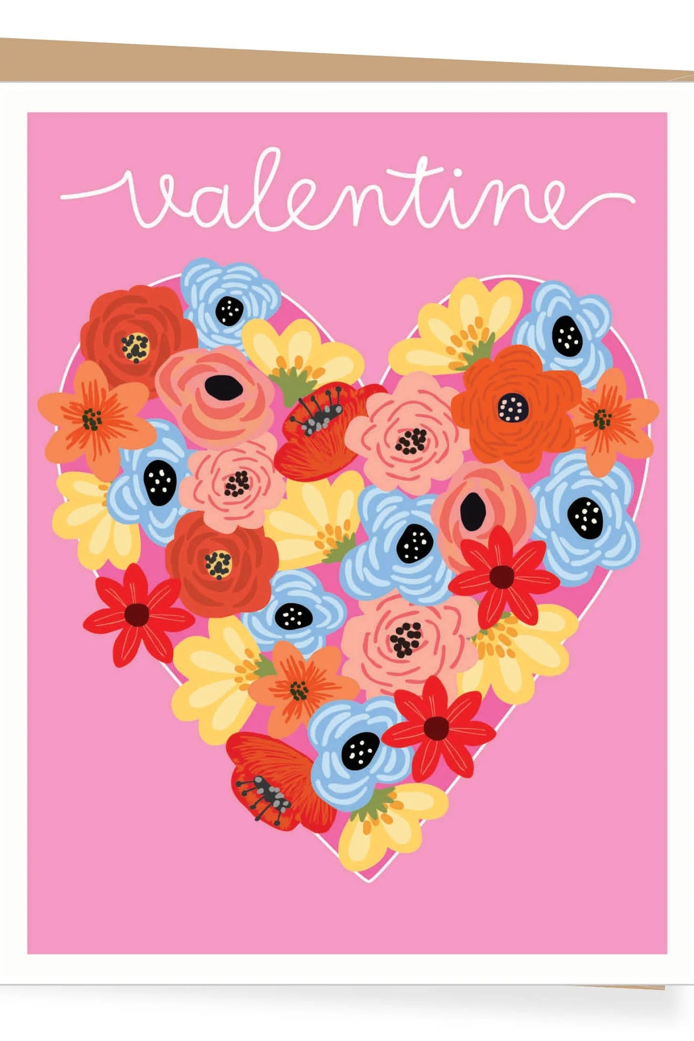 A2 Size (4.25 x 5.5 inches folded).Inside message reads: "HAPPY VALENTINE'S DAY!"Printed on premium recycled paper.Paired with a recycled brown kraft envelope.Packaged in cello.