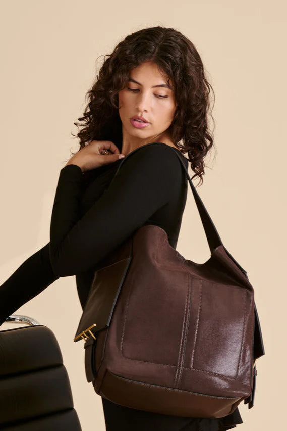 A timeless bag with modern details. This sleek silhouette and simple shoulder strap are elevated by bold buckled side flaps and subtly chic stitching. Carry this shoulder bag everywhere—from the office to dinner plans.
