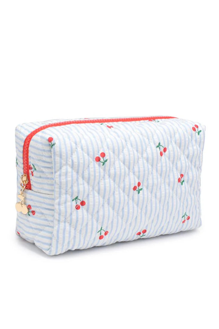 Embrace effortless charm with the Cherry Lane Cosmetic Pouch, your new go-to for stylish organization. This adorable pouch features a playful design that adds a dash of personality to your essentials. Its spacious interior accommodates everything from makeup to toiletries, ensuring you stay polished on every outing. With a sturdy zipper and a chic gold charm, it merges functionality with flair. Crafted with thoughtful materials, it’s perfect for those who care about style and ethics. Elevate your handbag collection with this delightful accessory that embodies both chic aesthetics and daily practicality.