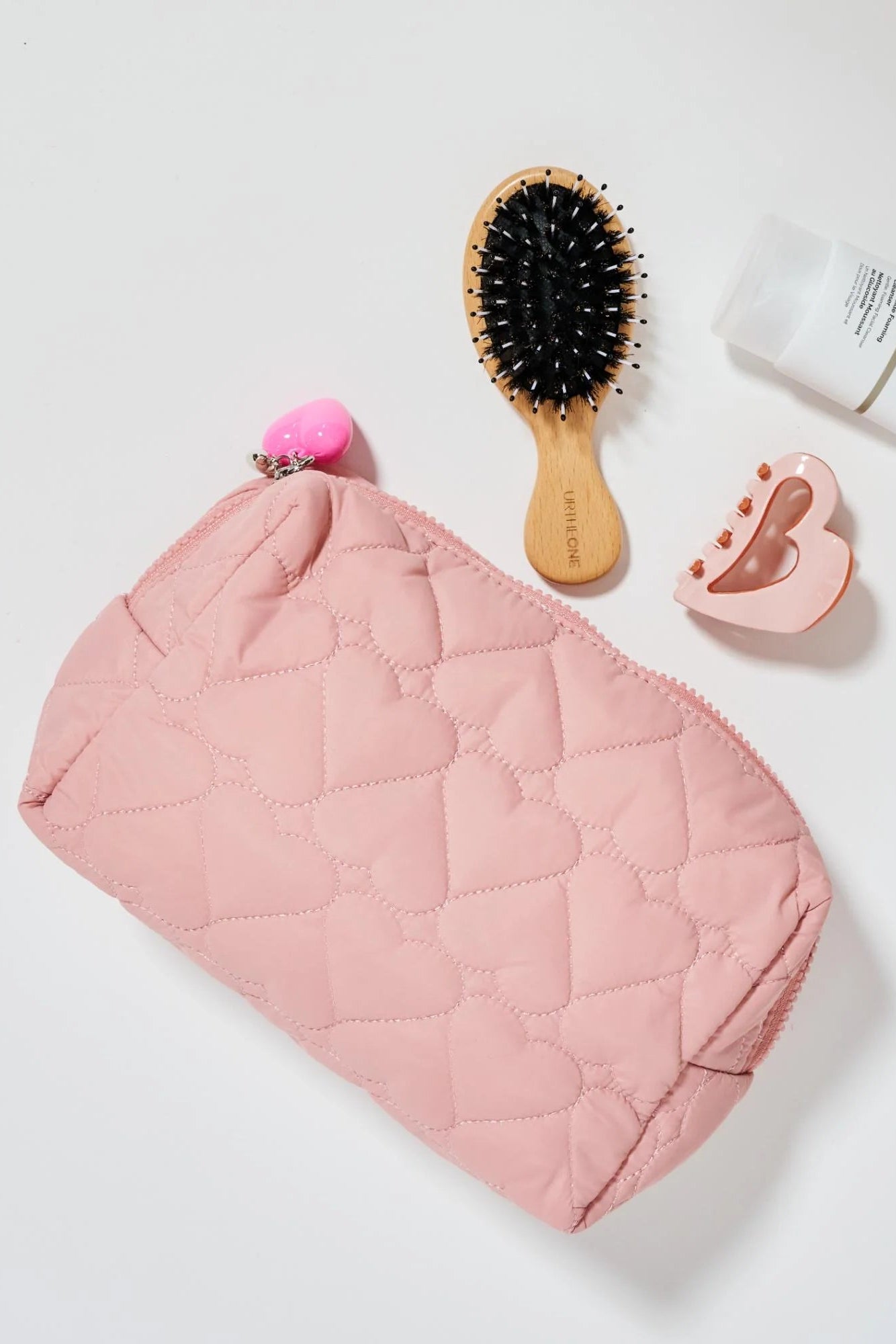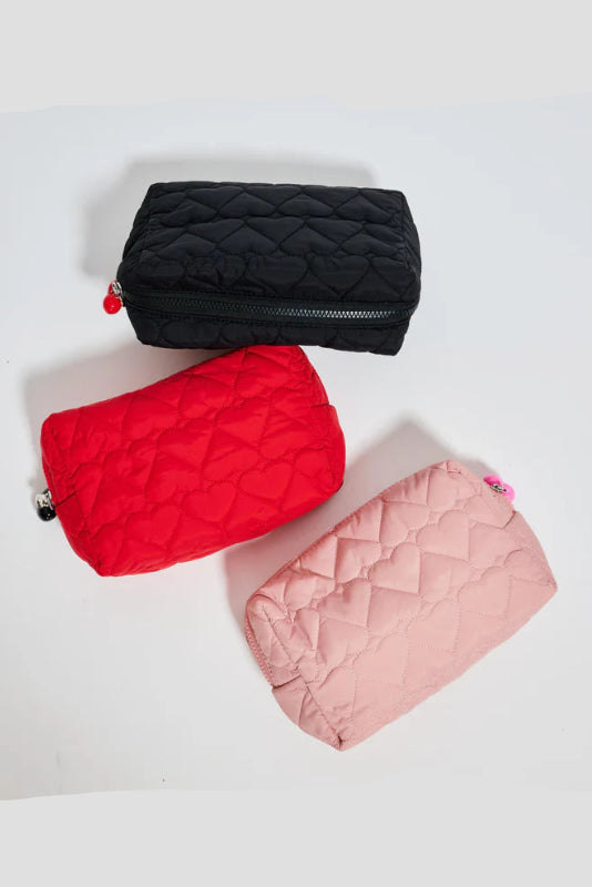 Effortlessly chic, the Pull My Heart Cosmetic Pouch is your go-to accessory for organizing beauty essentials on the move. Designed for the modern woman, this versatile pouch showcases a quilted heart pattern, adding a touch of fun to any ensemble. Crafted from vegan materials, it aligns perfectly with your ethical principles. Its spacious interior accommodates everything from makeup to tech essentials, making it an ideal companion from office to evening outings. With a playful charm accent and zipped closure, you’ll love how it combines practicality with trendy flair. Elevate your accessory game today!