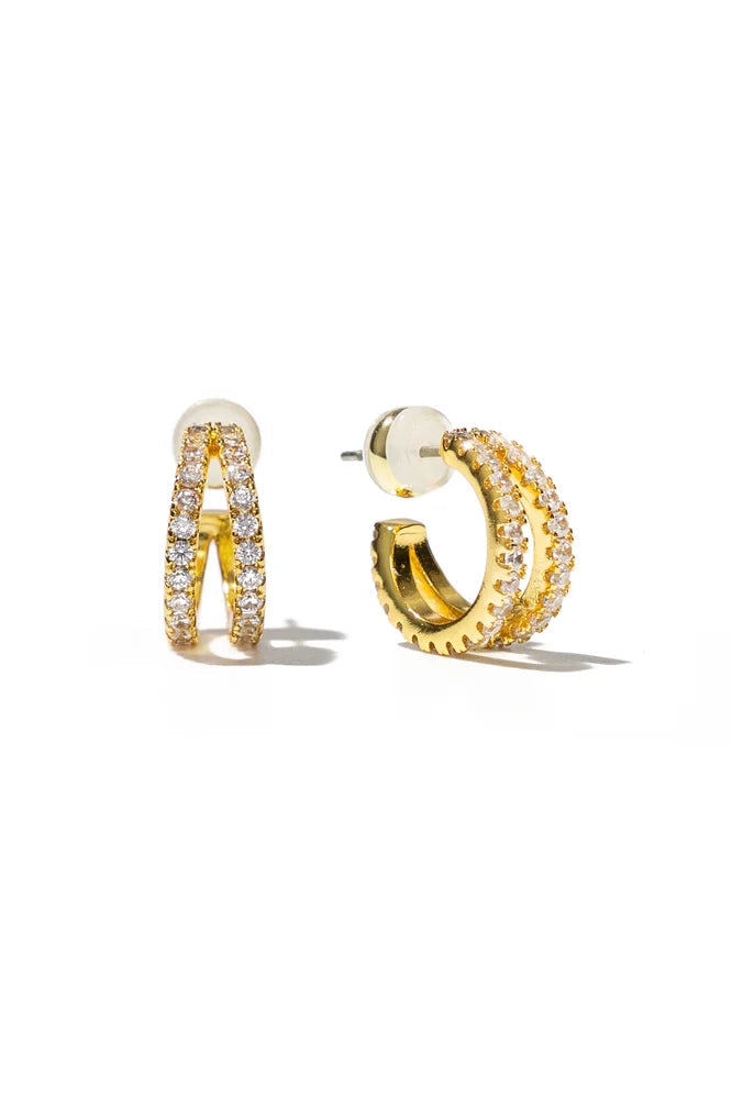 Two earrings in one. These gold pavé hoops combine classic links with a bold twist—lightweight, stylish, and made to shine every day.