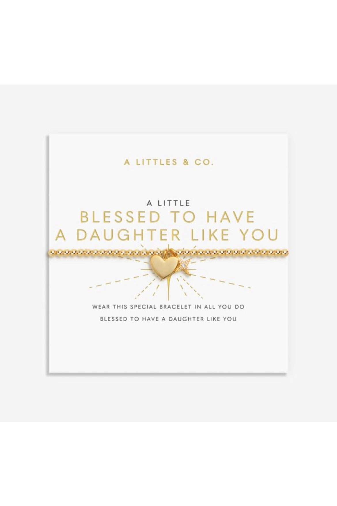 Celebrate your faith with those that mean the most with our ever-growing collection of Faith A Littles. Made to last and be loved for a lifetime, our A Little 'Blessed To Have A Daughter Like You' Bracelet In Gold-Tone Plating is threaded with our classic gold-tone plated beads and decorated with a pretty heart and a sparkling starburst charm. Wrapped around a sentiment-stamped card and framed by a sweet poem, it's the perfect piece to show devotion to your shared beliefs.