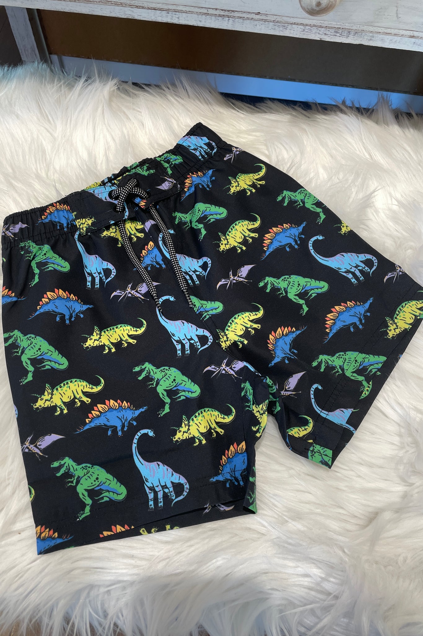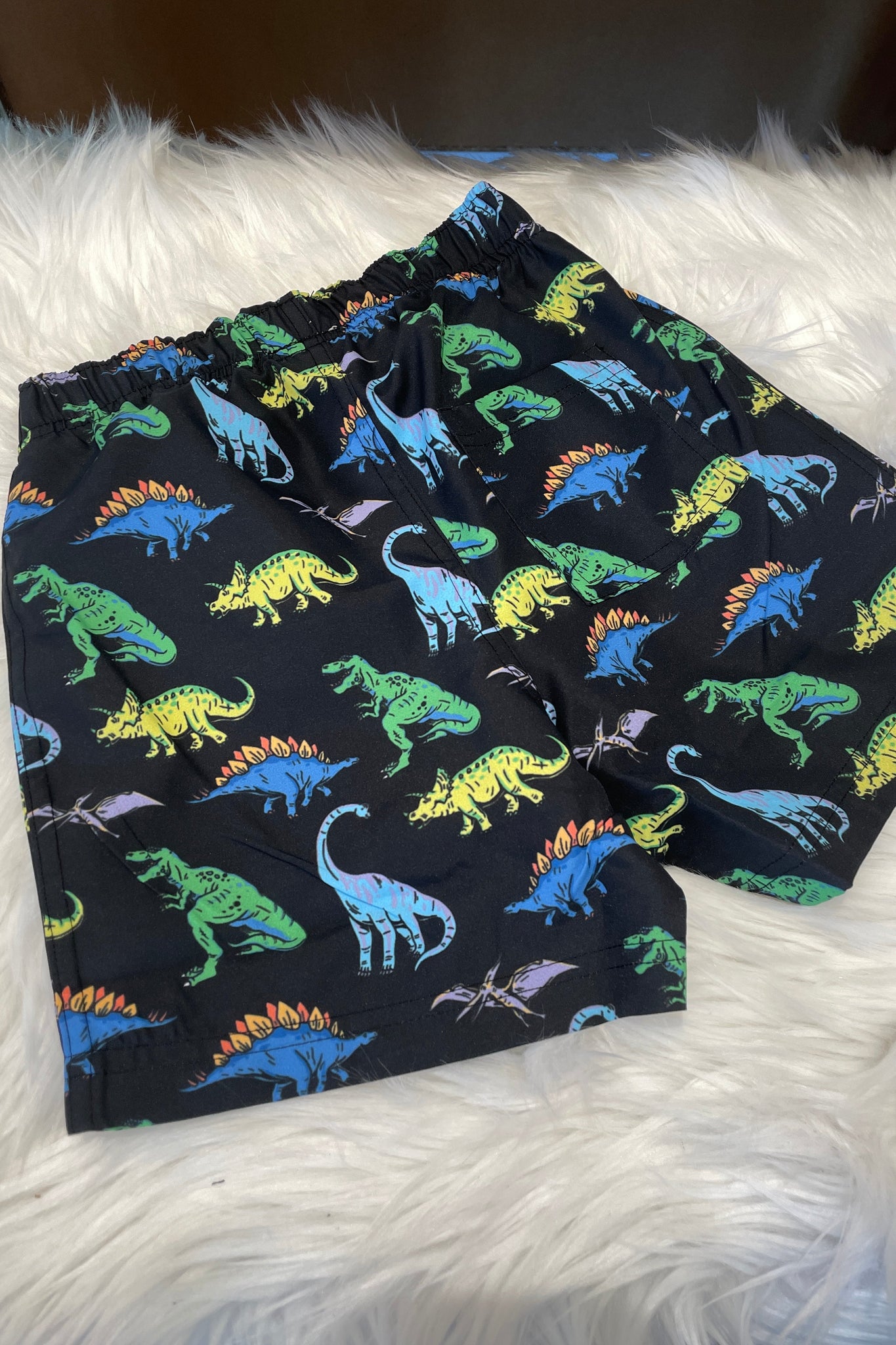 Roar into summer with these vibrant neon dino board shorts! Featuring eye-catching dinosaur graphics in bold neon colors, these shorts are perfect for pool days, beach trips, and water adventures. Built with quick-dry fabric and a comfortable elastic waistband, they keep up with active kids who love making a splash. The fun prehistoric print makes getting ready for water fun even more exciting!