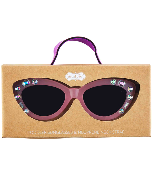 Say hello to sunshine with our Toddler Sunglass Set. The two piece set comes with UV400 protected toddler sunglasses. The sunglasses are complete with rhinestone details and sunglasses also come with a removable neoprene strap.