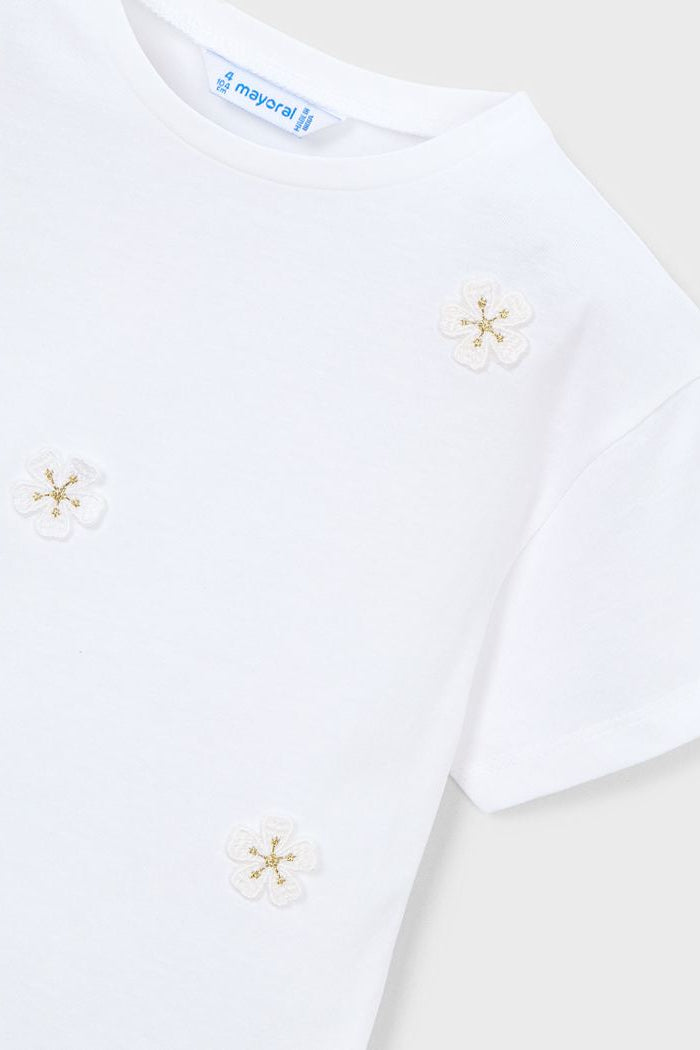 A fun and flirty tee featuring adorable 3D daisies that pop right off the fabric. Perfect for adding a cheerful touch to any girl's wardrobe!