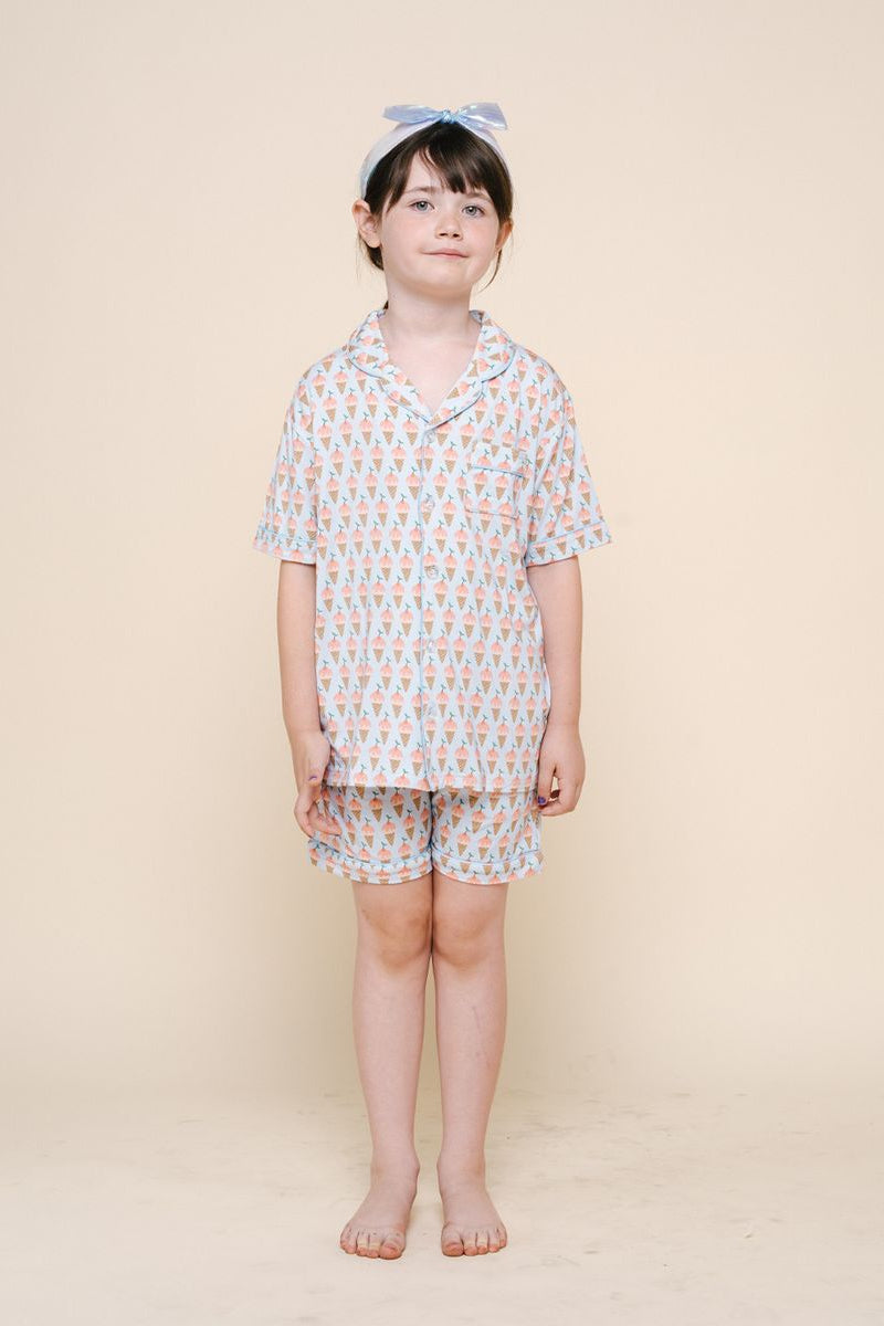 Introduce your daughter to the perfect blend of comfort and style with our Girls Bamboo Button Ice Cream PJ Set. Crafted from sustainably sourced bamboo fabric, this two-piece ensemble features a soft, breathable construction ideal for restful nights. The charming ice cream print adds a playful touch, while classic button closures ensure easy dressing and undressing. Bamboo's natural temperature-regulating properties keep her cool in summer and cozy in winter, making this set a year-round favorite for bedtime and loungewear.