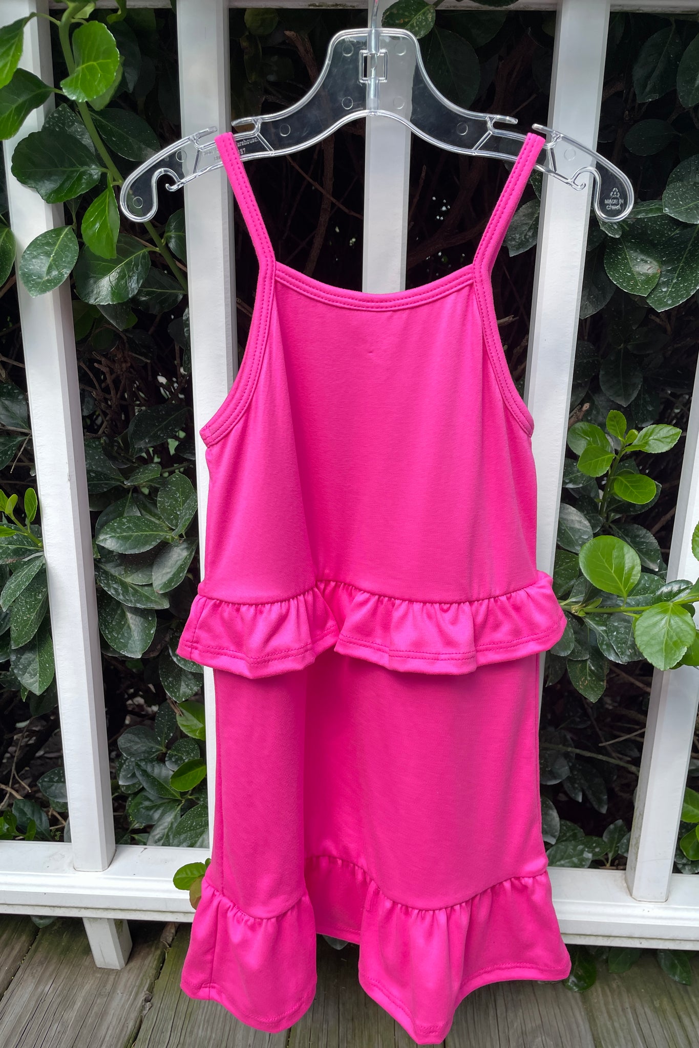 This girls' ruffle heart cami dress brings a playful charm to any little wardrobe. Featuring delicate ruffle details and a sweet heart design, it’s perfect for twirling and sunny day adventures. Lightweight and comfy, it keeps her feeling free and fun all day long.