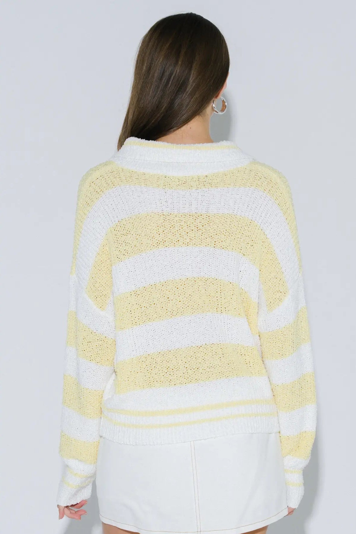 Striped long-sleeve knit sweater with a polo collar!