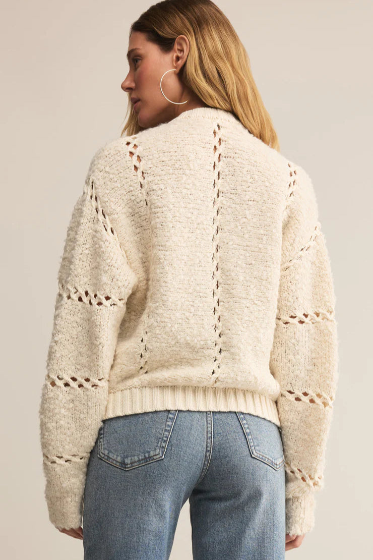 Soft texture meets delicate details in this zip-up sweater, crafted from plush, high-pile yarns and finished with intricate crochet insets and ribbed trim. It’s a feel-good layer that adds polish to any look.