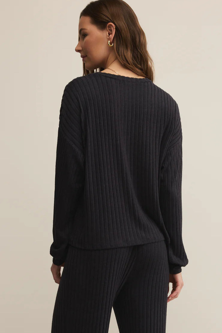 Silky soft with a barely-there feel, this long sleeve crew is made for lounging or layering. Its relaxed fit and luxe rib knit give it a balance of comfort and style you’ll wear on repeat. Pair with matching bottoms for a nice set!