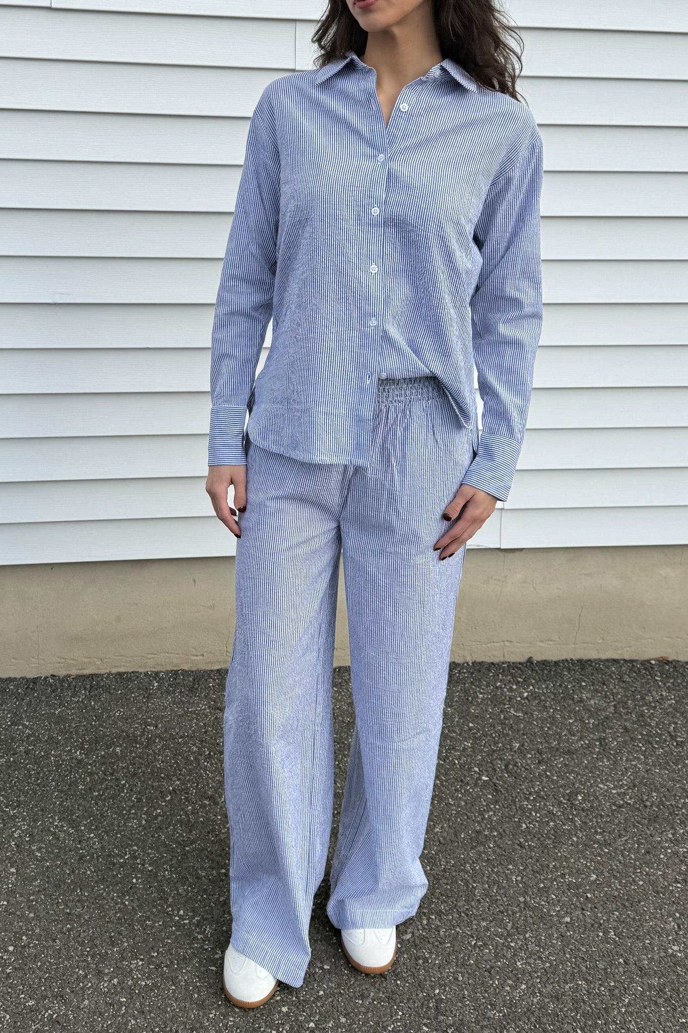 Elevate your wardrobe with this refined stripe button down tunic, a versatile piece that seamlessly transitions from office to weekend wear. The classic striped pattern adds visual interest while maintaining an understated elegance, making it an ideal foundation for layering or wearing solo. The button-down front offers effortless styling flexibility, allowing you to adjust the neckline to suit your preference. For a polished, coordinated look, pair this tunic with our matching stripe smock waist pant—together they create a sophisticated ensemble that balances comfort with contemporary style. Perfect for those who appreciate timeless design with modern sensibility.