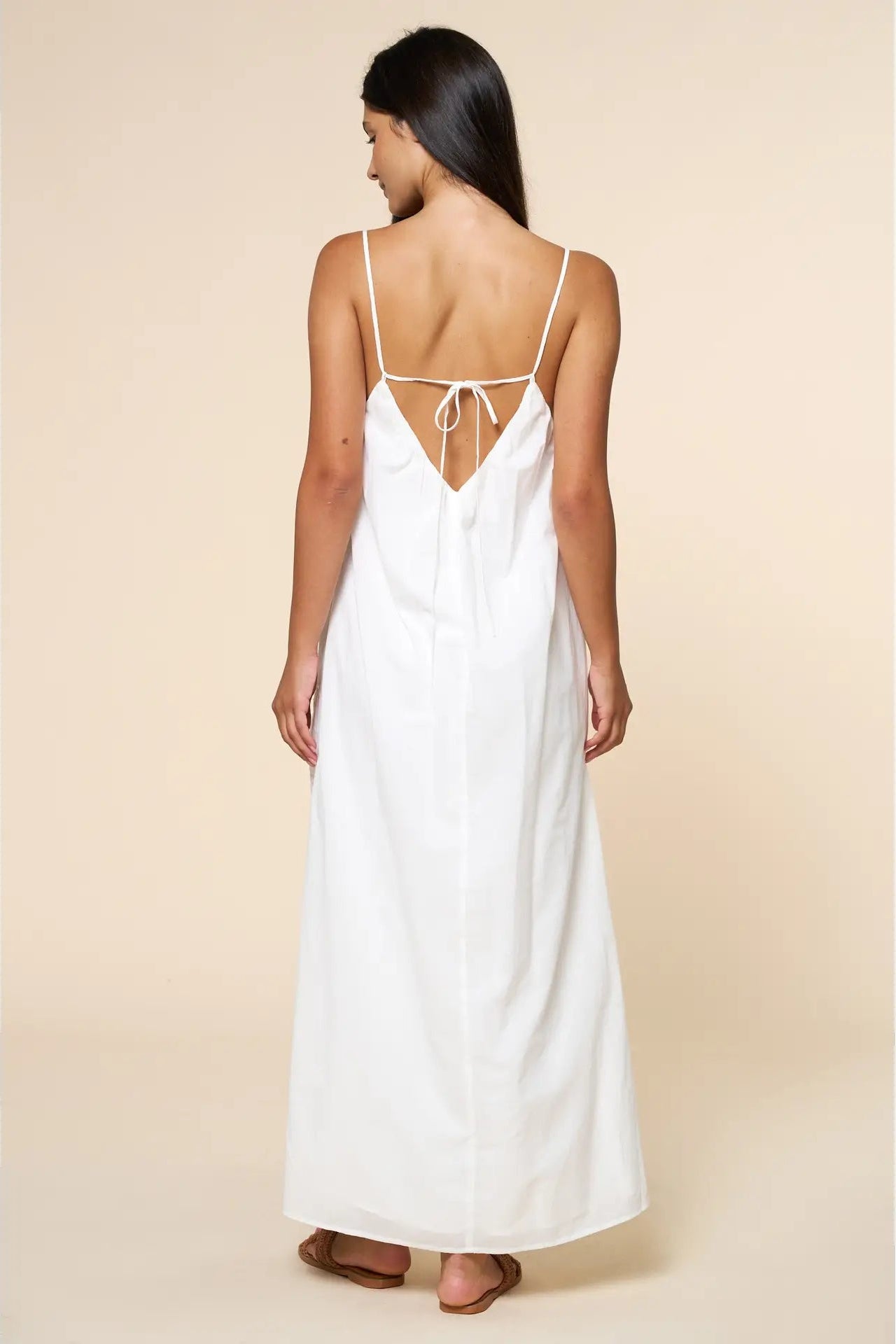 Embrace breezy elegance in this Star Fish Embroidery Eyelet Maxi Dress, featuring a V-neckline, adjustable back-tie spaghetti straps, and a loose, lined fit. Perfect for spring, summer, and beachside occasions, it combines effortless comfort with charming seaside-inspired style.