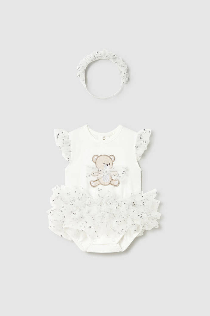 Adorable bear-themed onesie featuring a charming tutu skirt perfect for your little one. Soft, comfortable fabric keeps baby cozy while the playful design makes every moment Instagram-worthy. Ideal for playdates, photos, or everyday wear. This sweet piece combines style and comfort in one irresistible package that parents and babies love.