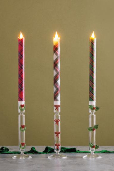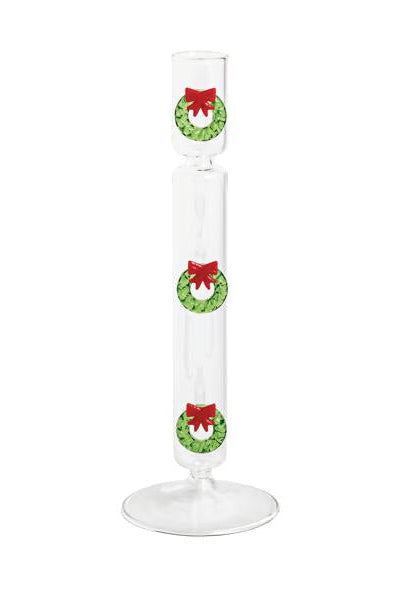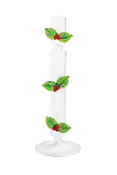 Elevate your holiday decor with the Glass Taper Holder, a stunning piece that combines elegance and festive charm. Crafted from high-quality glass, this candlestick holder features a beautifully detailed dimensional glass icon exterior, showcasing intricate designs that capture the essence of the season. Standing at 8 1/4 inches tall, it is the perfect size to make a statement on your dining table, mantel, or any special corner of your home. The clear glass construction allows it to blend seamlessly with any color scheme, while the holly accents add a touch of holiday spirit. Ideal for holding standard taper candles, this holder not only illuminates your space with a warm glow but also serves as a captivating centerpiece.