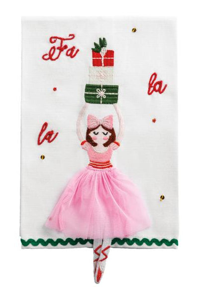 The Dangle Embroidery Towel is a charming addition to your holiday decor, featuring intricate embroidery on a high-quality canvas hand towel. This festive piece showcases delightful stuffed dangle legs that add a playful touch to your kitchen or bathroom. Adorned with ric-rac trim and scattered sequins, it brings a sparkle to any setting. Measuring 21" x 14", this towel is crafted from 100% cotton, ensuring softness and durability. Perfect for adding a whimsical flair to your home or as a thoughtful gift for loved ones during the holiday season.