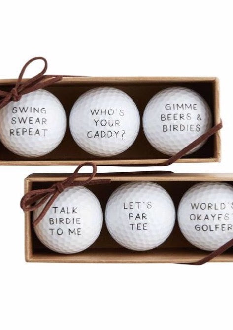 Choose between two different sets of three pack of printed golf balls for your favorite golfer.