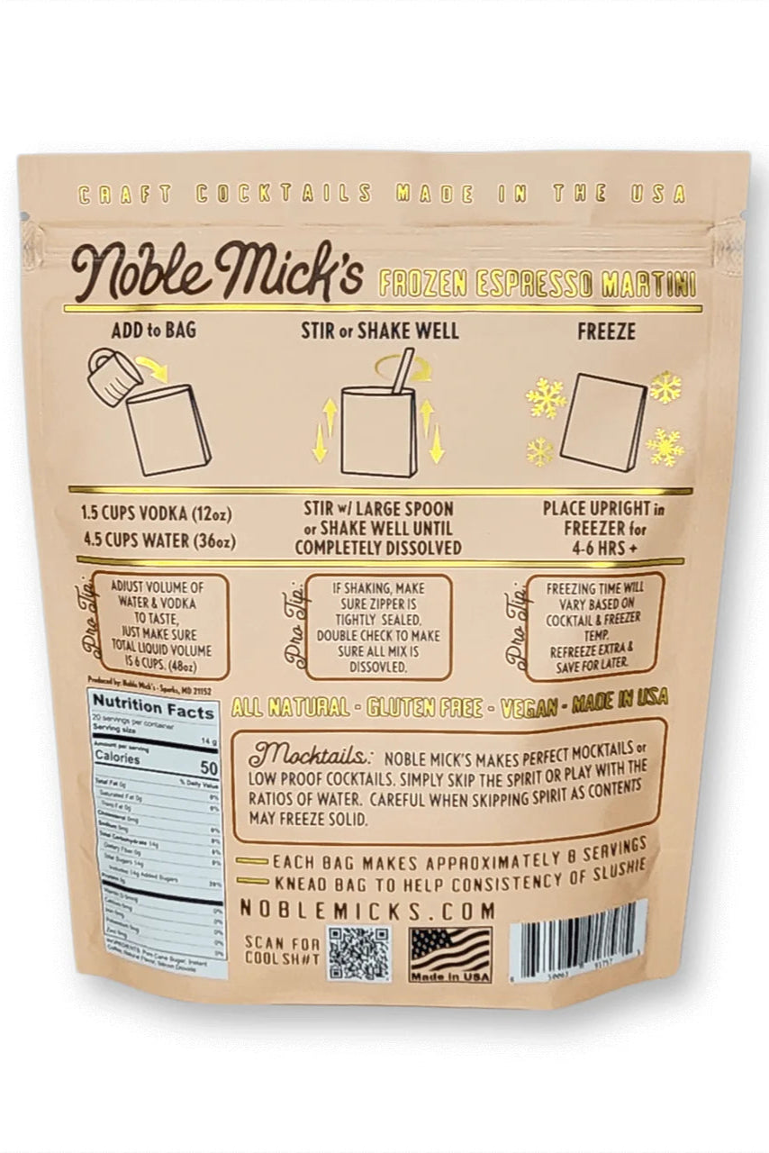 Frozen Cocktails don't get easier than this! Each bag makes 8 servings. No blenders ever! Simply add 12oz Vodka and 36oz water shake or stir and throw in the freezer. 100% all natural ingredients and perfect to share with friends and family at your next party.
